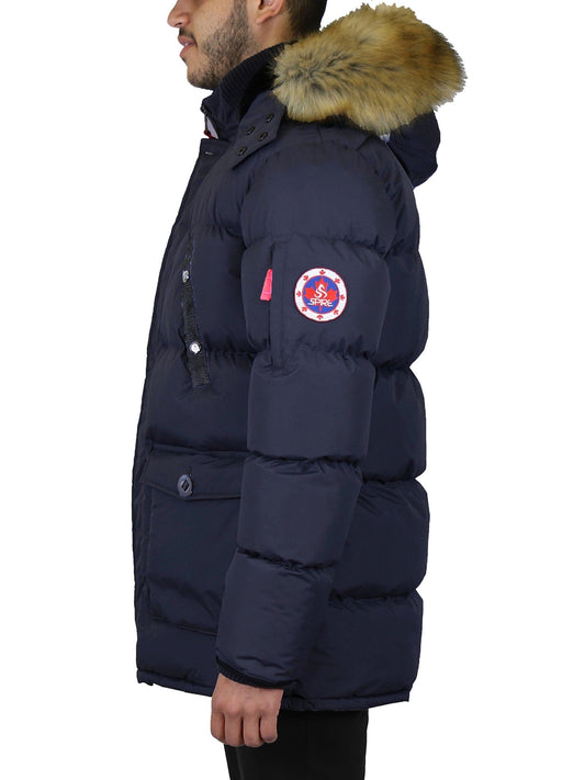 Men's Heavy Tech Puffer Jacket with Fur Hood