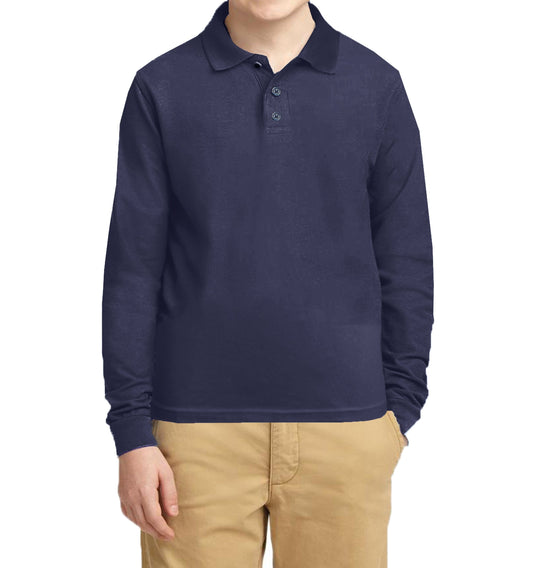 Boy's Long Sleeve Pique Polo Shirt - (Sizes 4-20)