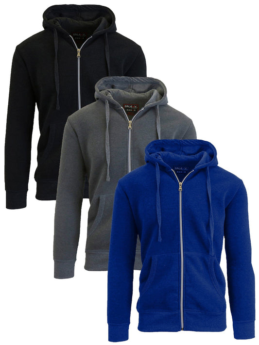 3-Pack Men’s Fleece-Lined Full-Zip Hoodie (S-3XL)