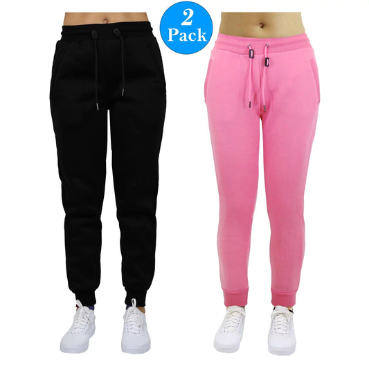 GBH Women's Slim Fit Fleece Jogger Sweatpants with Zipper Pockets 2-Pack