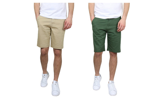 Paquete de 2 pantalones cortos chinos elásticos de algodón con frente plano y corte entallado para hombre (tallas 30-42)