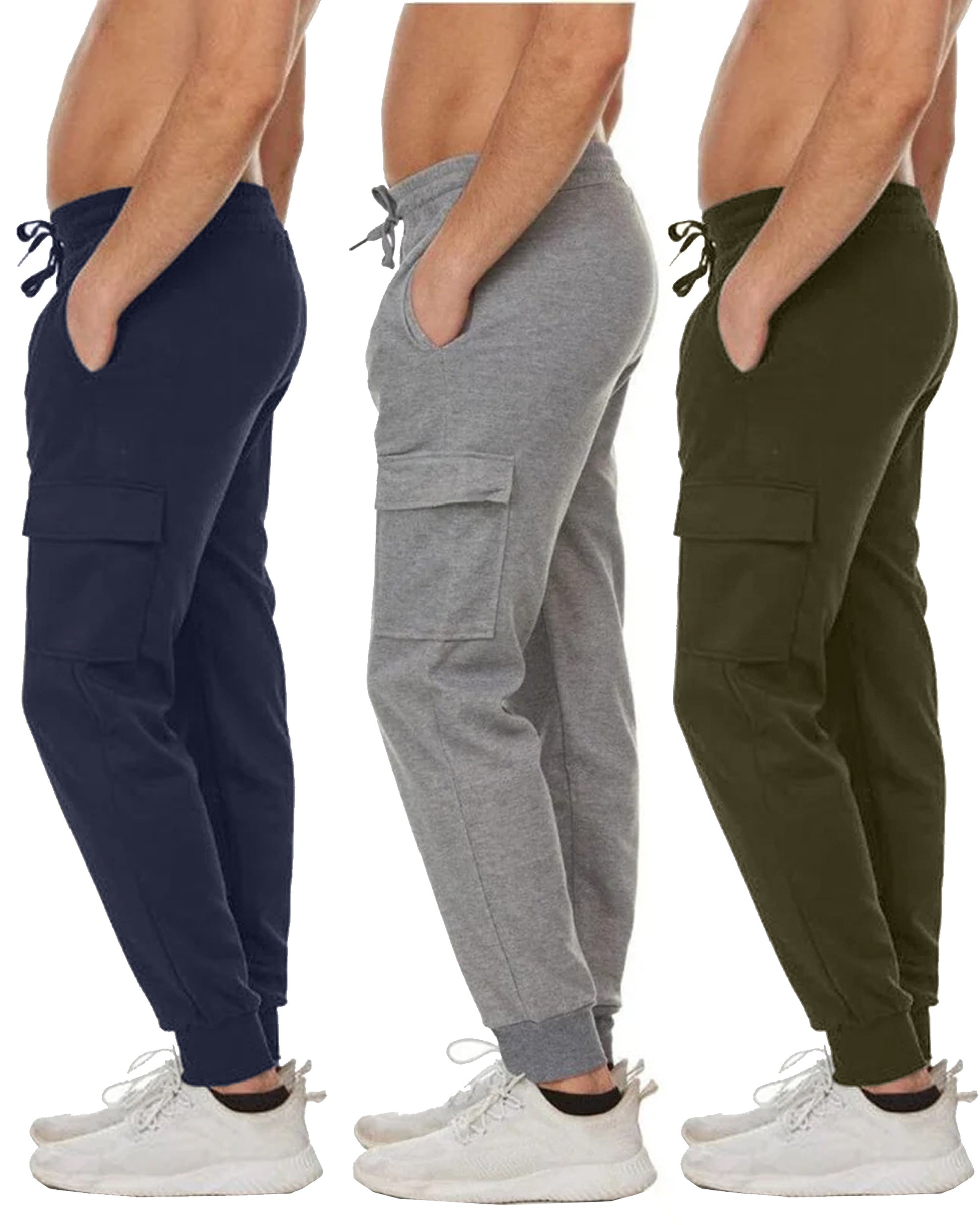 3-Pack Men's Slim Fit Fleece Jogger Sweatpants with Cargo Pockets (S-2XL)