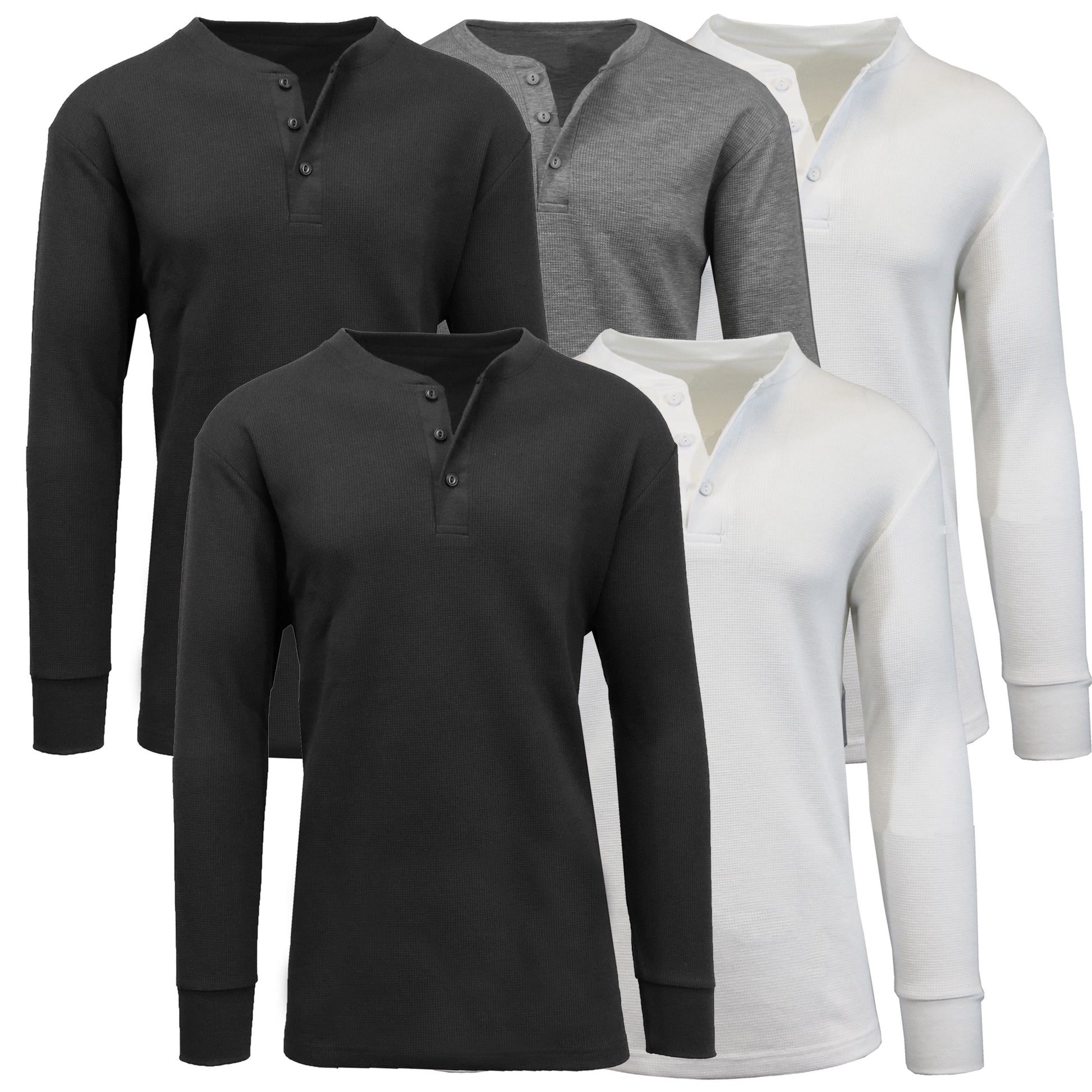 5-Pack Men's Thermal Shirts - Waffle Knit Henley & Crew Neck Styles, Long Sleeve, Soft & Warm Layers for Winter
